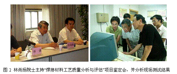 2006年6月11日,由哈尔滨焊接研究所林尚扬院士主持,唐伯钢教授级高工等多位资深焊接专家对项目进行了鉴定(图2),对其以高度评价:该技术成果为用户选择和评价焊接材料工艺性能提供了一种快速而有效的手段;为制定焊接材料一些重要工艺性的评价标准奠定了基础。应用前景广阔。该研究成果达到了国际先进水平。