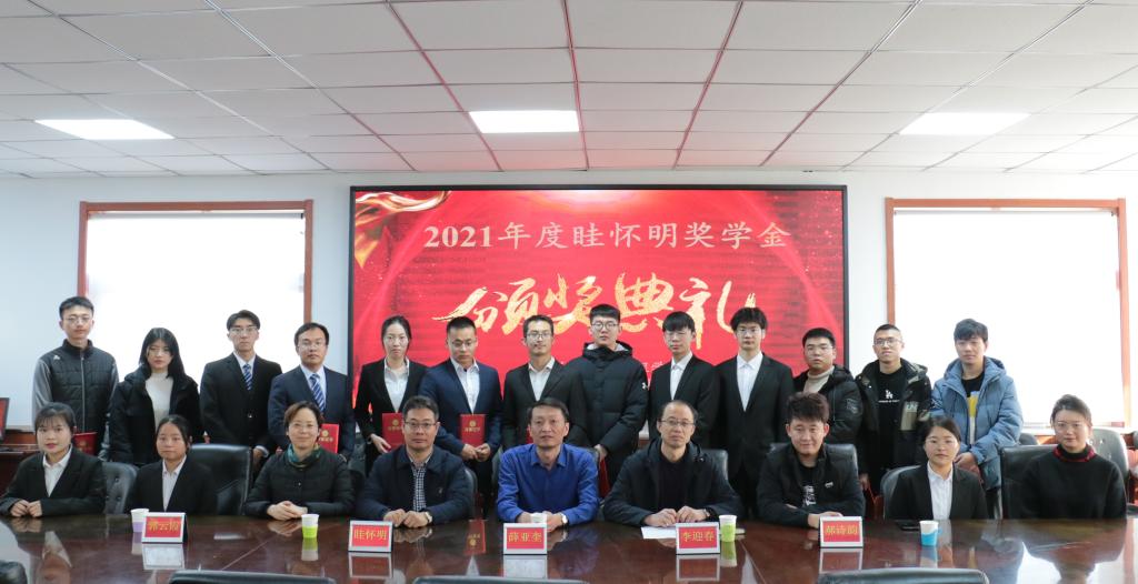 于第一会议室举行2021年度眭怀明奖学金颁奖仪式。出席本次颁奖仪式的嘉宾和领导有:扬州峰明光电新材料有限公司董事长眭怀明、院领导、辅导员老师及获奖学生。