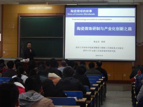 首先,杨老师从陶瓷微珠的制备工艺、设备的改进、工艺的优化、陶瓷微珠的应用等方面进行了讲解,并深入浅出、旁征博引,将所领导的课题组的研究成果展示给了威尼斯人