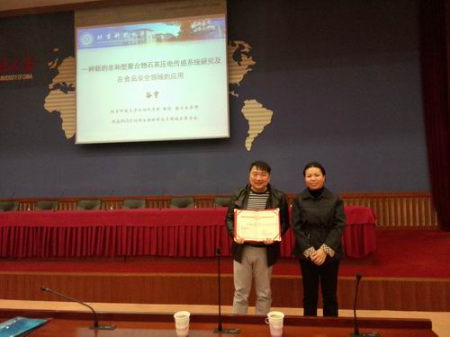 本次讲座主题为“一种新的亲和性聚合物石英压电传感系统的研究及在食品安全领域的应用”,期间,谷宇教授先对其所研制的压电传感系统及产品进行了详细的讲解,并对其在食品安全领域的应用现状和前景进行了介绍,该系统具有灵敏度高等特点,产品检测速度快、准确程度高、设备移动灵活,具有实质性的应用价值,大幅度提高了国内科技人员研制开发毒品、爆炸物、混合气味等复杂物质的快速识别检测应用技术的能力,解决了危险物快速识别检测方面的技术瓶颈。