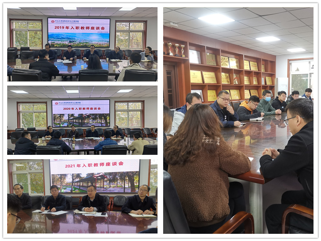 在笃学楼第一会议室先后召开了2019年、2020年、2021年入职教师座谈会,院党委书记廖海洪、院长王强、副院长李迎春、副院长刘斌参加了会议。