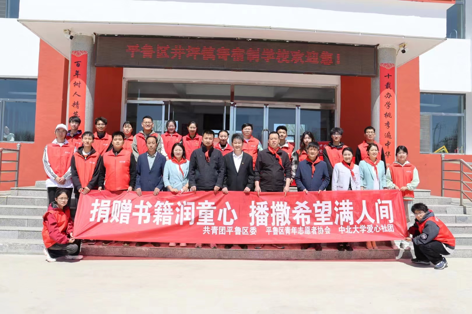 爱心社联合山西省朔州市平鲁区团委、区教育局、区青年志愿者协会一同举办“捐赠书籍润童心,播撒希望满人间”公益志愿活动。校学工部教育办主任毋登辉、校团委社团工作部部长孙哲元、威尼斯人