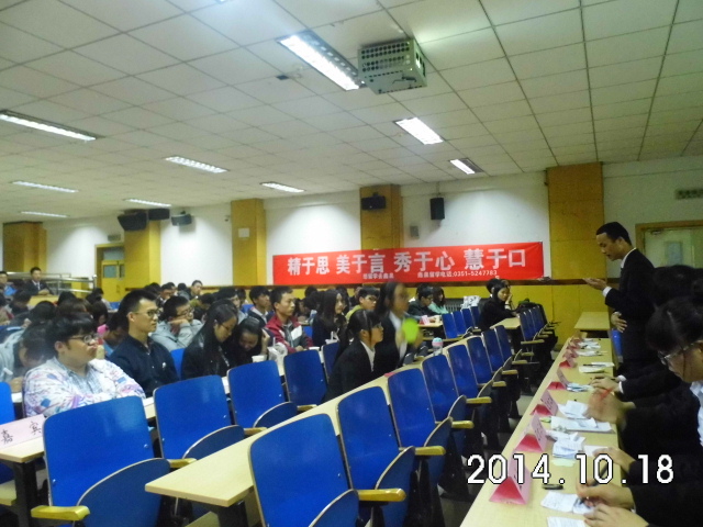 学生会主席刘雪晴、部分部门部长及辩论赛指导刘锐观看。