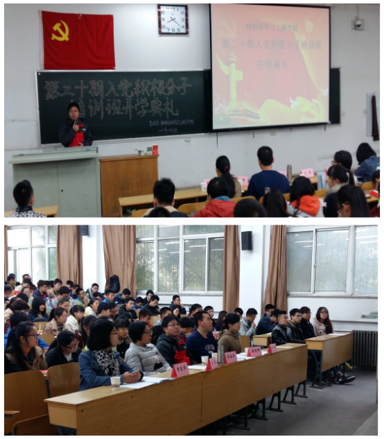 守则》。毋登辉宣布了本期培训班的培训安排,即在11月7日、8日进行讲课堂学习,9日至15日分组讨论,21日院党课考试,并在22日之前各小组自行组织公益实践活动和撰写党课培训心得体会。学员代表段一杰同学向全体学员倡议要严格要求自己,争取成为一名优秀的社会主义建设者和接班人。