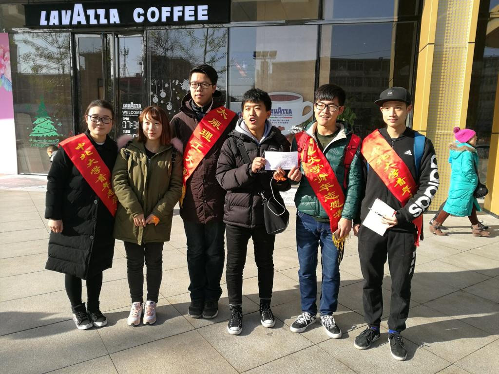 周日早上7:00,16030542班的全体同学在文韬2号公寓楼下集合完毕,一同前往市里的万达广场附近进行采访活动。每名队员都积极地表达了自己的想法,为采访活动的顺利进行添砖加瓦。到达采访地点,同学们按照之前确定的小组分散进行采访,每个组分工明确,有的采访、有的拍照、有的记录,还有同学为被采访的人系上丝带,一切进行得有条不紊。