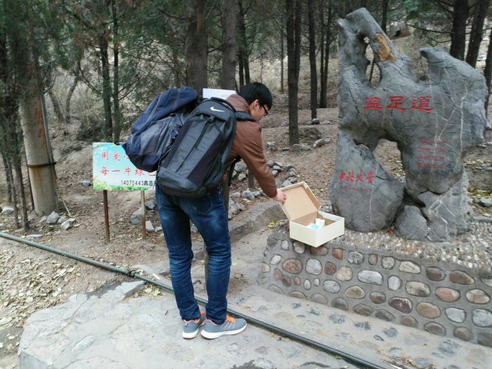 16030342班志愿者在青志队长张朝的带领下于二龙山下举办“二龙山自助医疗点”活动。