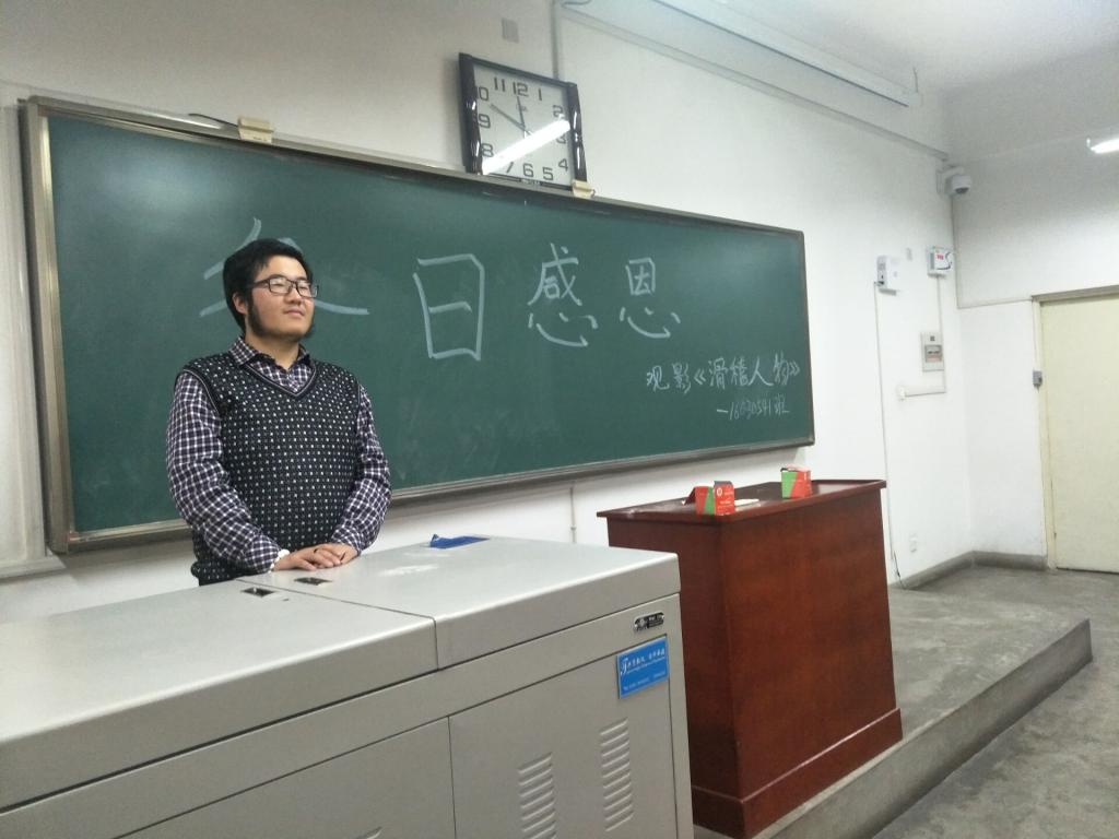 首先进行是观赏影剧《滑稽人物》,影剧中的主人公无论是身体上还是精神上都并不乐观,生活也很艰辛。组织观赏影剧是为了让同学们感受生活的来之不易,应当心怀感恩之心。同学们在观影过程中表现的非常认真,之后还和身边的同学分享了自己的感受。活动的第二项是给各位同学录像,每人在10至20秒的时间内,对自己想要表达感谢的人说一些感谢的话语,记录下暖心的时刻。同学们很有秩序的走到镜头前,认真的对父母、老师、同学等人说出了感恩的话。