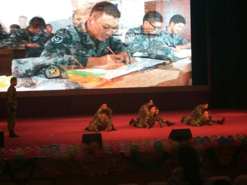 20日早上七点,15030342团支部、16030341团支部、16030342团支部的全体成员已经到达科艺苑,开始了布置会场工作以及最后一次彩排。九点“重走长征路,学习长征精神”文艺汇演正式开始,主持人李洋子、何鑫开场报幕。首先播放了视频《长征》,《长征》简单介绍了长征历程,还收录了老兵的叙述,当老兵沧桑沙哑的声音响起时,会场里仿佛也弥漫着悲伤,那是一段辉煌的胜利,同时又何尝不是一段血与泪的记忆。之后是有奖竞猜环节,气氛一时热烈起来,在场观众都踊跃回答问题,大家也因此对长征有了更准确的了解。随后节目更加精彩,依次是红歌独奏《精忠报国》、诗朗诵《我心中的长征》、小号演奏《我们走在大路上》、观看习近平关于长征胜利八十周年讲话视频、预备役摔擒表演、合唱《歌唱祖国》、相声《量子力学和广义相对论在创作与表演中的指导及应用》,最后院党委副书记廖海洪总结讲话。