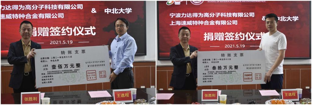与宁波力达得为高分子科技有限公司和上海速威特种合金有限公司捐赠仪式于威尼斯人