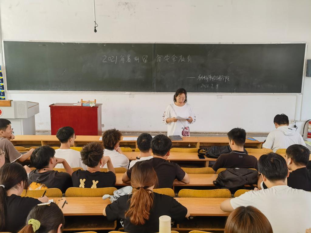暑假来临,为了进一步加强对暑期留校学生的安全管理,提高学生安全防护意识及自我防范能力,学院于7月9日上午11点在10101H教室召开了暑期留校学生安全教育大会。院党委副书记郭云霞、学生科科长殷炳叶、学生科辅导员李彤辉、韩伟及全体留宿本科生参加会议。