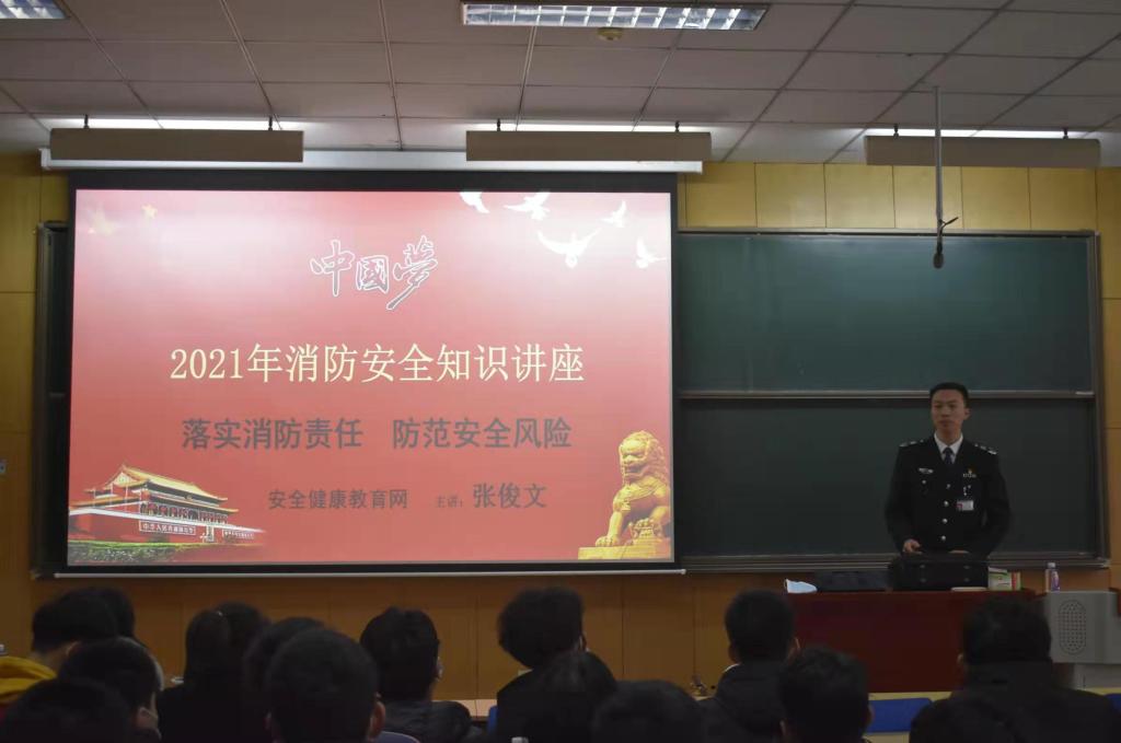 培训开始,张俊文教官首先进行了简单的自我介绍,接着便切入本次讲座的主题“2021消防安全知识培训”。张教官以同学们的日常生活为例,以真实案例向同学们展示了因各种原因造成的火灾情况,之后便开始了由浅入深的讲解,从火灾的定义和分类、火灾发生的原因、怎样预防火灾、火灾逃生的基本知识以及如何正确报警等方面给现场同学们进行了消防知识的培训,并告诫各位同学需要有充足的安全意识,避免意外的发生。