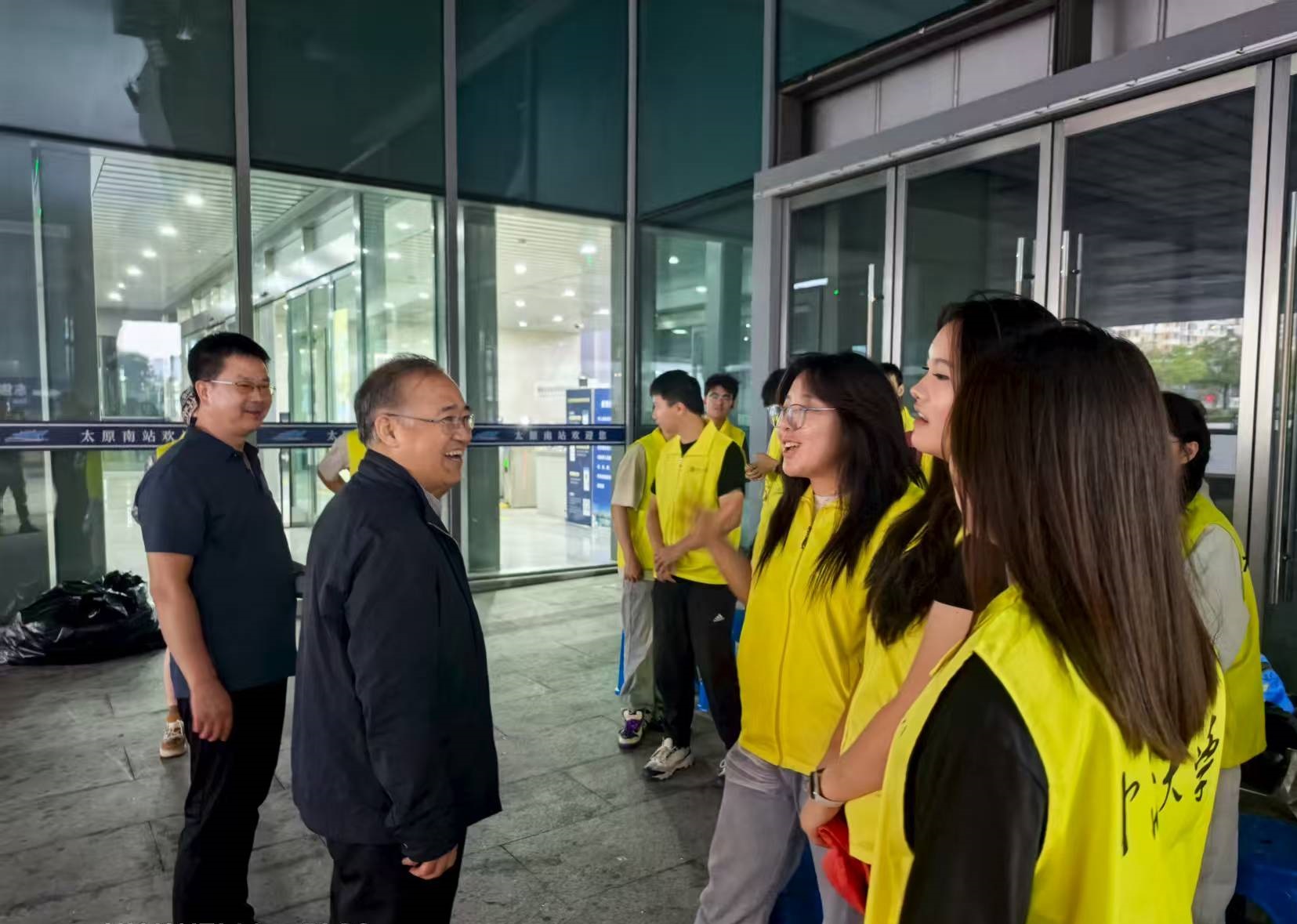 王强院长一行亲临太原南站接站服务点,亲切慰问奋战在一线的志愿者同学们,详细查看迎新接待流程,并对他们的辛勤付出表示感谢,同时叮嘱工作人员要始终以细心、耐心做好服务,展示出中北学子良好的精神面貌,让新生及家长第一时间感受到威尼斯人
