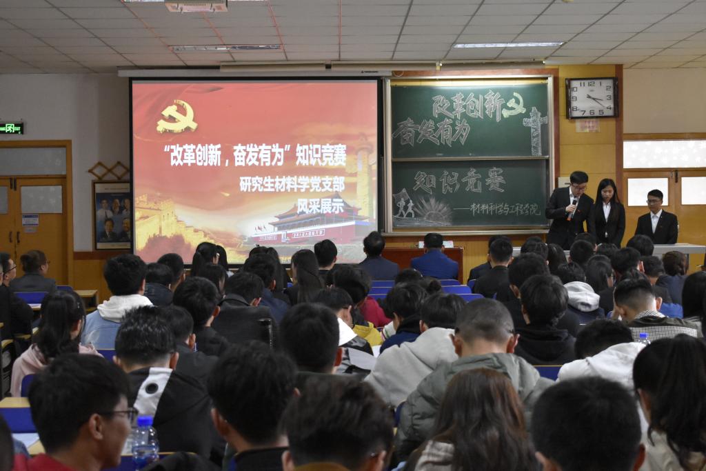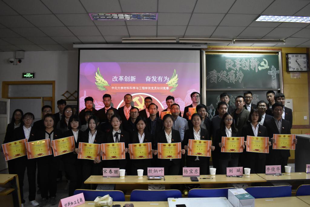 活动开始,所有党员进行了重温入党誓词,随后竞赛活动正式开始。知识内容紧紧围绕大讨论重点聚焦方面,紧扣习近平总书记在纪念改革开放40周年讲话精神、习近平总书记视察山西讲话精神、右玉精神和习近平新时代中国特色社会主义理论体系等重要内容,全体参赛选手沉着应战、冷静答题,以扎实的政治理论和良好的精神风貌赢得了全场阵阵掌声。经过激烈角逐,研究生材料学支部勇夺一等奖,高分子材料与工程学生支部和研究生材料加工支部夺得二等奖。