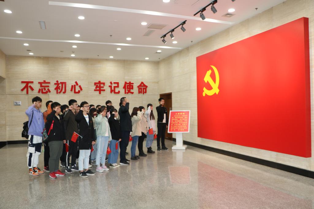 广场前,朱德、彭德怀等11位将军的八路军将领群雕栩栩如生、风采凛然。进入八路军纪念馆,刻有滚滚黄河、巍巍太行和蜿蜒长城的巨形浮雕和 “太行精神 光耀千秋” 八个红色的大字映入眼帘。在讲解员的指引下,大家认真聆听了老一辈无产阶级革命家的革命事迹,以及太行老区人民投身抗战的光辉历史,一幅幅珍贵的历史图片,一段段发人深省的文字,一件件深烙历史印迹的陈列品……让大家一次次良久驻足,陷入沉思。特别是“平型关大捷”的立体实景表演,生动地再现了烽火连天的战斗场面,让大家感受到八路军将士和根据地人民奋不顾身、英勇无畏的伟大精神,接受了深刻爱国主义教育和革命洗礼。参观结束后,全体党员在党旗前,高举右拳,庄严宣誓,重温入党誓词。