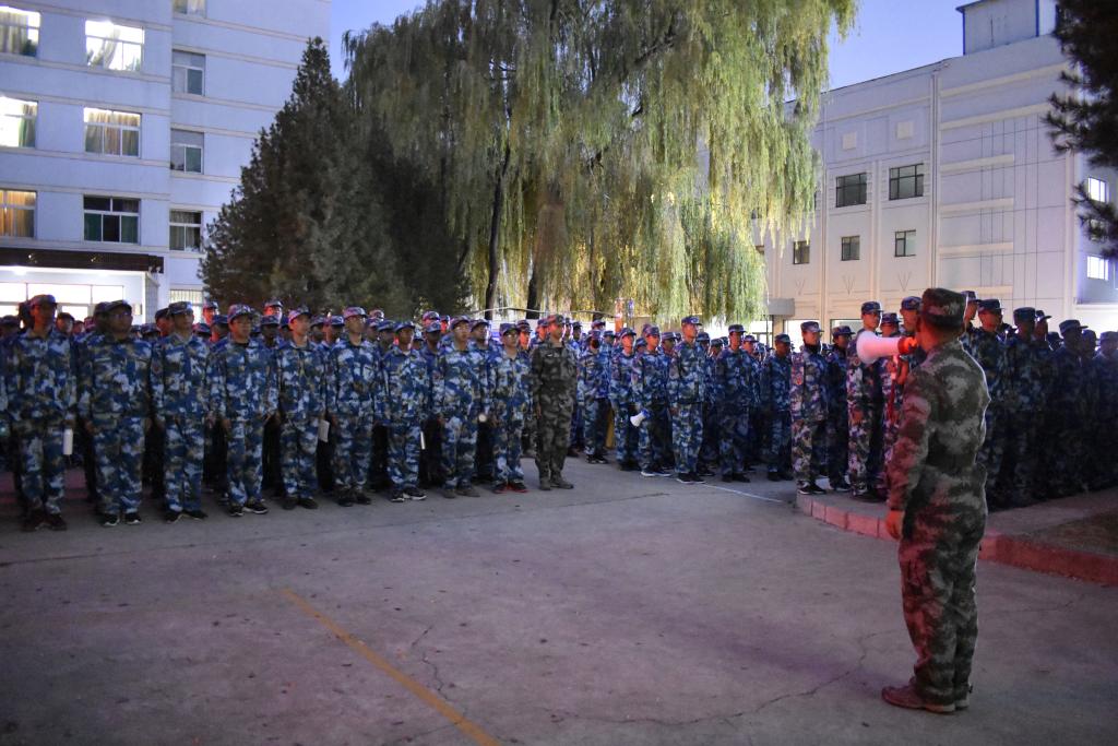 清晨,大一新生身着军装在文韬二楼下集合,由教官带领前往训练场地。行进过程中,三营队列整齐、步伐统一、口号声响彻云霄。抵达场地后,各连正式开始训练。第一项训练内容是站军姿,在教官的指导和纠正下,新生们很快掌握要领,个个身姿挺拔,神情坚毅。随后是稍息、立正和停止间转法的训练,新生们注意力集中,按照教官指令完成动作,全力以赴做到标准和规范。然后,新生们进行了蹲下与起立,脱帽与戴帽以及敬礼的训练。他们精神饱满、动作流畅、英姿飒爽。训练期间,教官还展示并指导学习了行军拳,新生们认真学习,努力把动作做到最好,最终获得教官认可。最后,教官把队伍带回文韬二楼下解散。