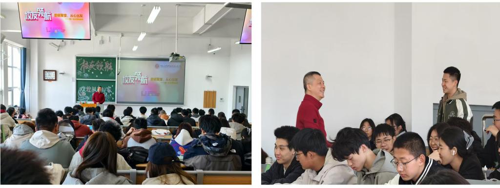 在分享环节,王建文校友着重分享了创业过程中把握几次关键机遇的宝贵经历。他用自身故事为同学们生动诠释了把握机会的重要意义,鼓励同学们在学习和生活中要保持积极主动的态度,勇于展现自我。他强调,“唯有鼓起勇气展示自己,方能抓住稍纵即逝的机遇”,只有做到这一点,才能在未来的人生道路上实现自身价值。