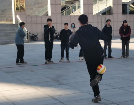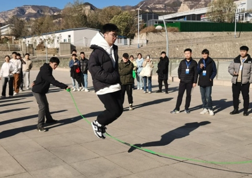 最后一项“鱼跃龙门”。此项目是一项考验个人反应、联合技巧与团队写作的集体运动,每队需要22人参与。随着裁判员一声哨响,紧张、活跃的跳大绳比赛正式开始。各班摇绳的同学奋力挥动着双臂,在摇转的长绳中,各班参赛队员随着绳索上下跳跃,大家齐心协力、节奏和谐有序,长绳始终保持圆滑的弧线,如同当空飞舞的长蛇,每一次跳起落地的声音谱出了一曲动听的乐音。