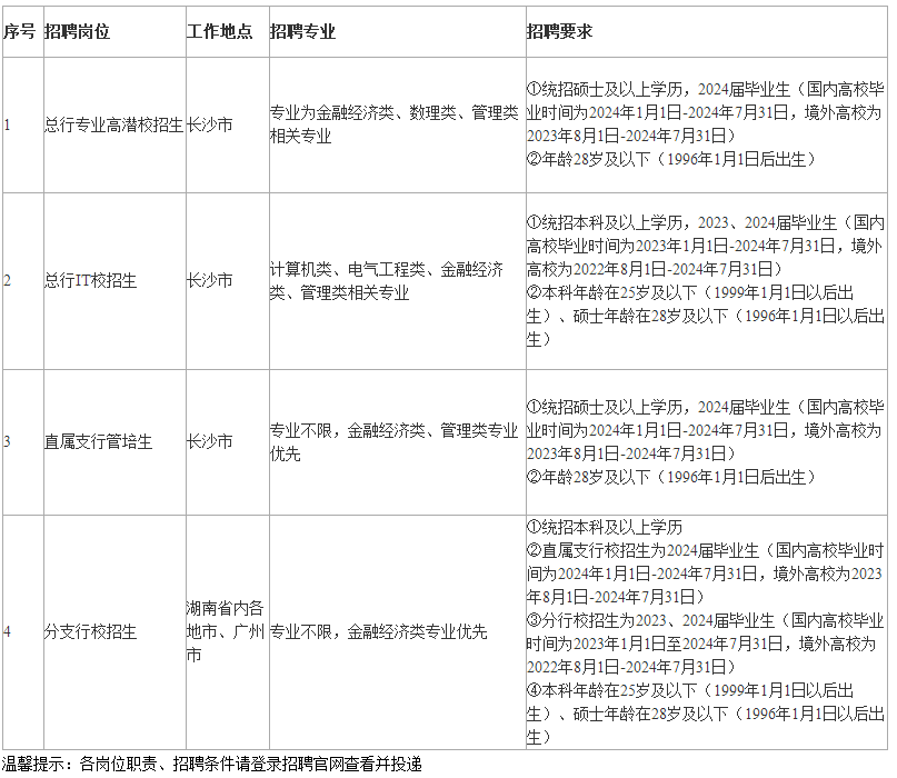 8、请广大应聘者以本行官方招聘网站公告中的信息及相关联系方式为准。同时,我行招聘从不向应聘者收取任何费用,也未授权任何机构、个人进行所谓笔试、面试培训,请提高警惕,谨防受骗。
