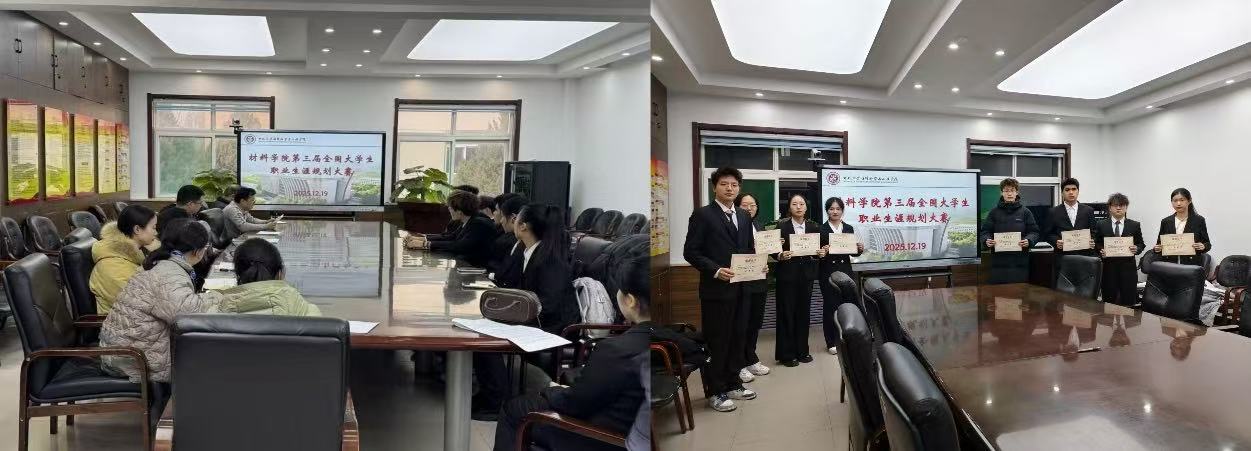 第三届全国大学生职业生涯规划大赛于2025年12月19日在院办西侧会议室顺利开展。本次大赛以职业规划为核心,为学生搭建了展现职业理想、规划未来发展的平台,参赛选手们围绕自身专业特色与职业目标,带来了一场兼具深度思考与创新的职业规划展示。