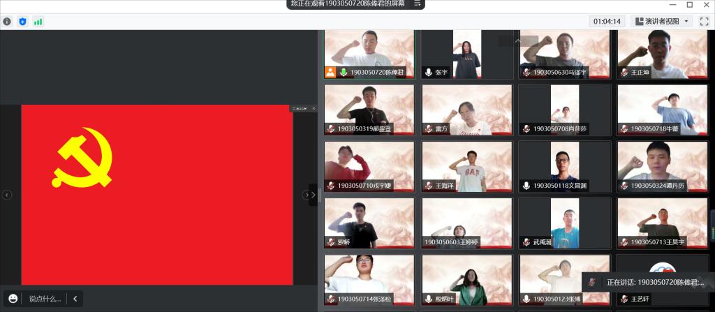 2022年7月1日,复合材料与工程学生党支部在腾讯会议上召开了“喜迎二十大·奋进新征程”主题党日活动。本次活动由党支部副书记陈俸君同志主持,参会的同志有院党委委员杜瑞奎同志以及党支部全体党员同志。