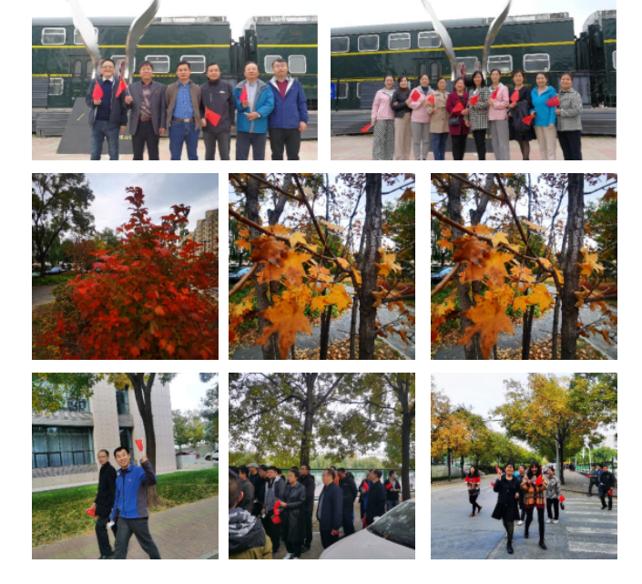 、铁路公园和行知广场。老师们在漫天秋色里,走出办公室,呼吸新鲜空气,沐浴温暖阳光、欣赏绚丽景色,体会收获喜悦。满眼是红、橙、黄、绿的色彩,老师们纷纷拿起手机,记录下这美妙的时刻,感受诗意浓浓的晚秋。
