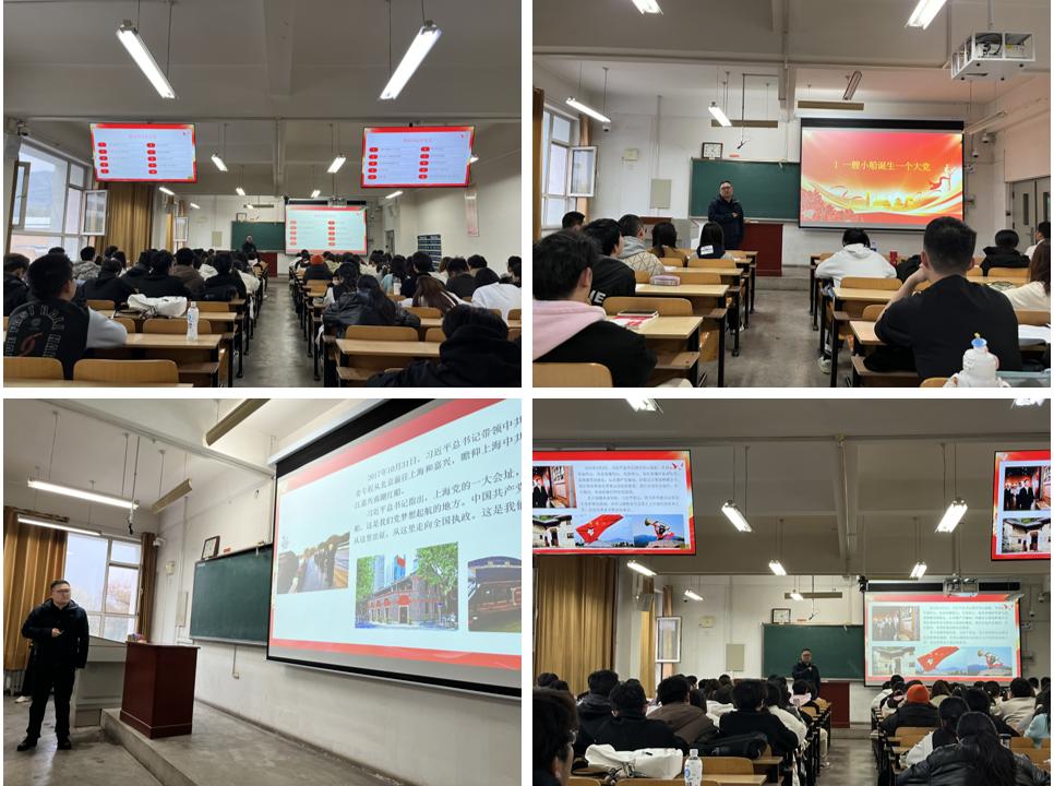 副院长王超同志在14202H教室为复合材料与工程学生党支部和高分子材料与工程学生党支部讲授题为“跟着总书记学党史”的专题党课。