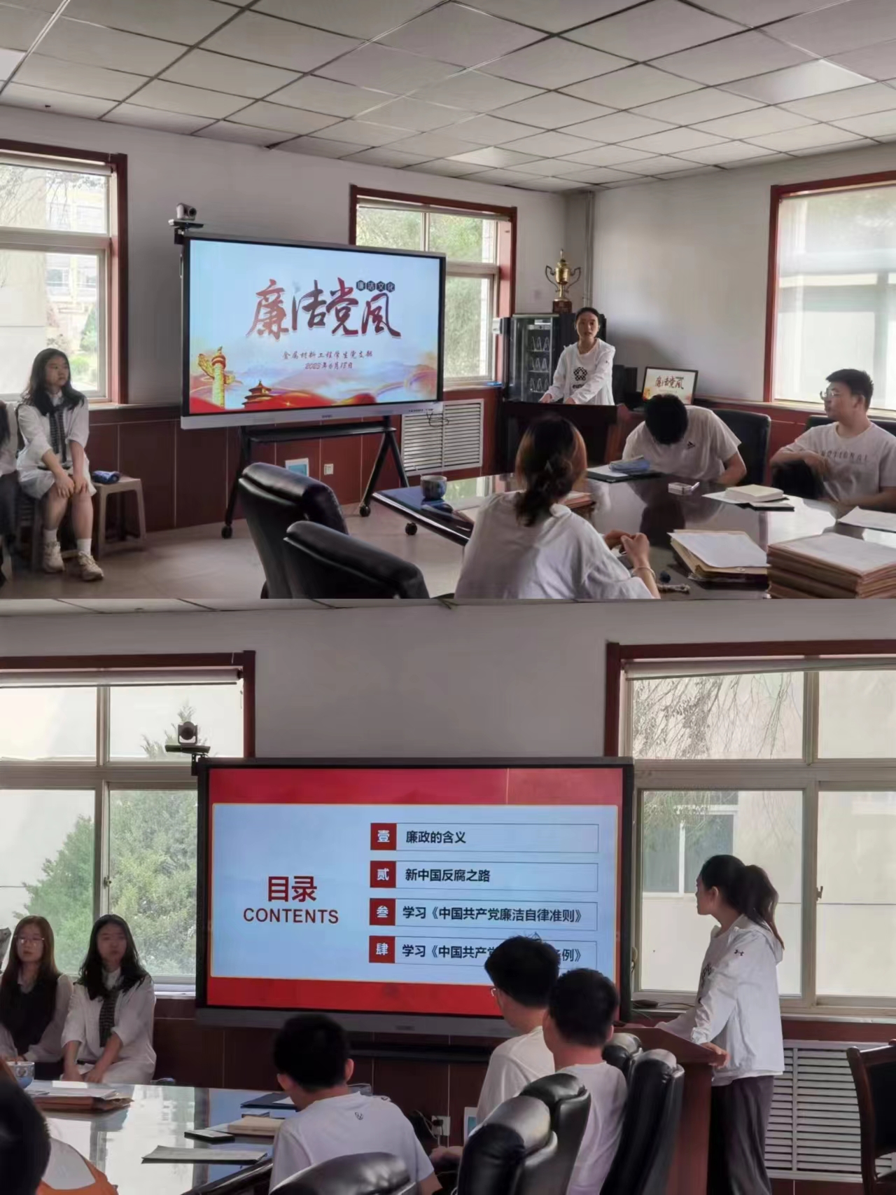 清风正气,6月18日上午,金属材料工程学生党支部书记刘琴为支部党员和积极分子讲廉政党课。党课题目为:廉洁党风。